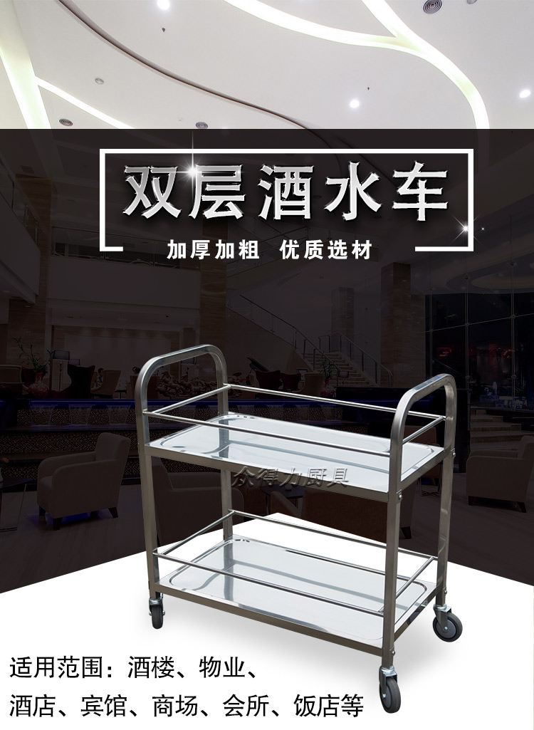 酒水車 方管酒水車 不銹鋼厚款 雙層酒水車
