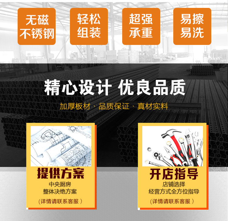 江西眾得力廚具有限公司生產(chǎn)銷售食品機(jī)械,商用廚具系列中央廚房設(shè)備,為客戶提供廚房整體解決方案。我司生產(chǎn)銷售的酒水車有大、中、小三種規(guī)格,采用201無磁不銹鋼設(shè)計(jì)。外形美觀大方,結(jié)實(shí)耐用。深受餐飲酒店客戶青睞