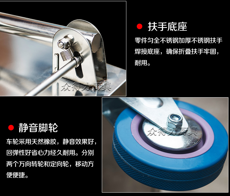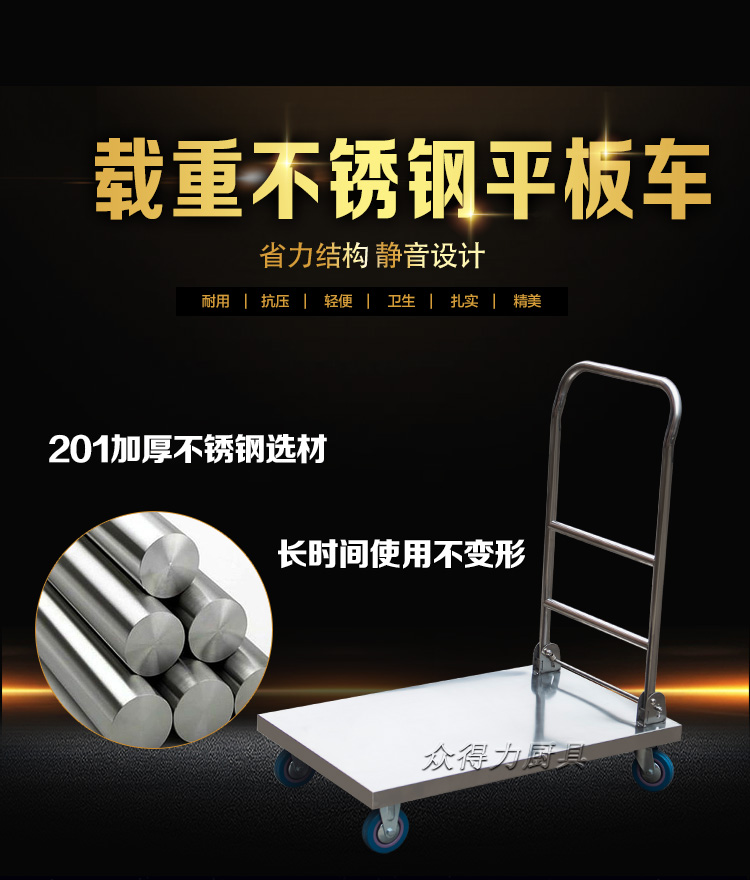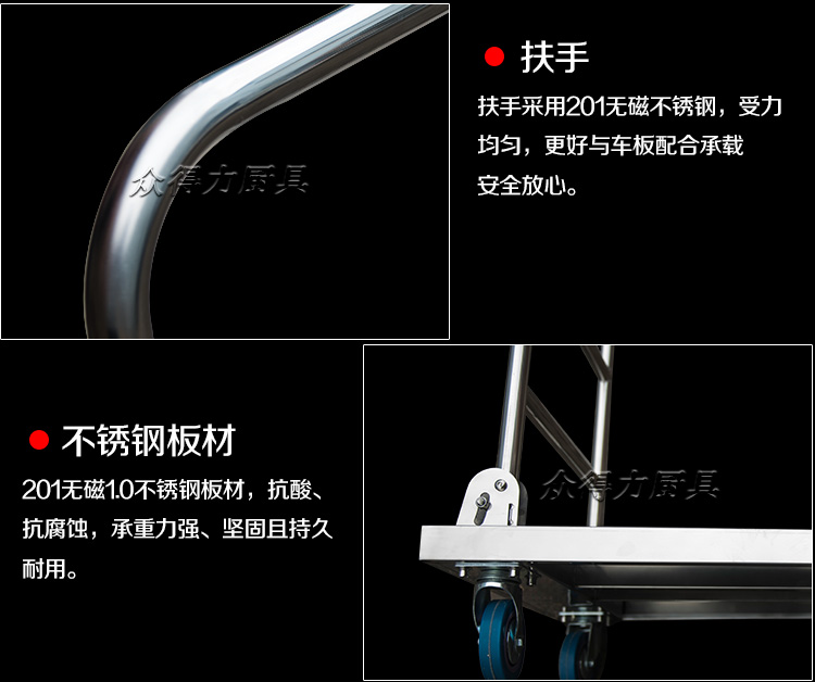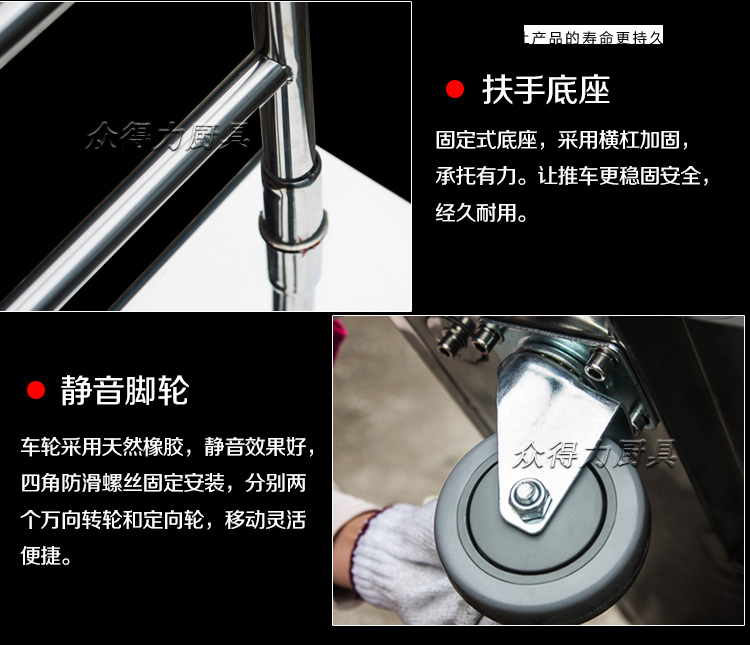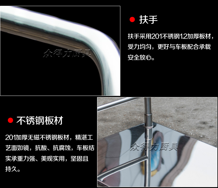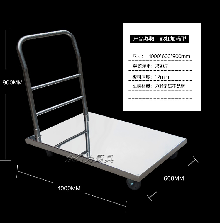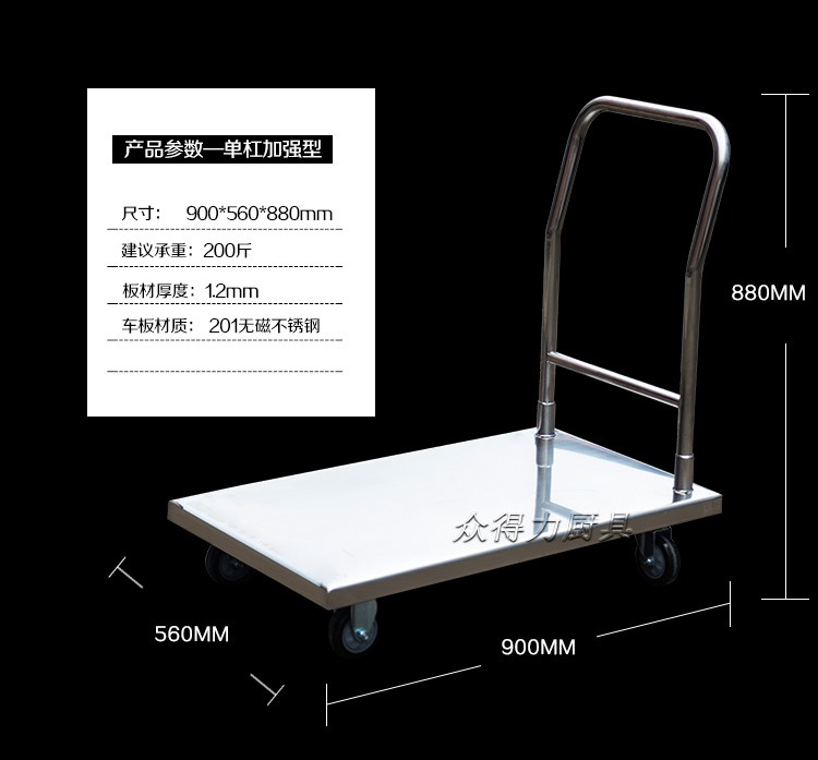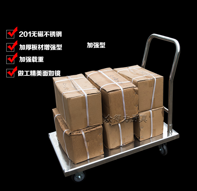 本推車有加強(qiáng)款,普通款,加強(qiáng)款推車采用201加厚不銹鋼板材設(shè)計(jì),承載能力強(qiáng),質(zhì)量穩(wěn)定可靠。歡迎選購