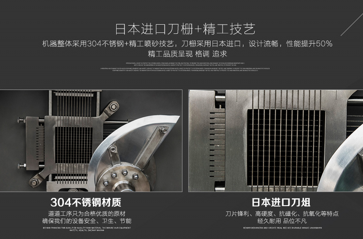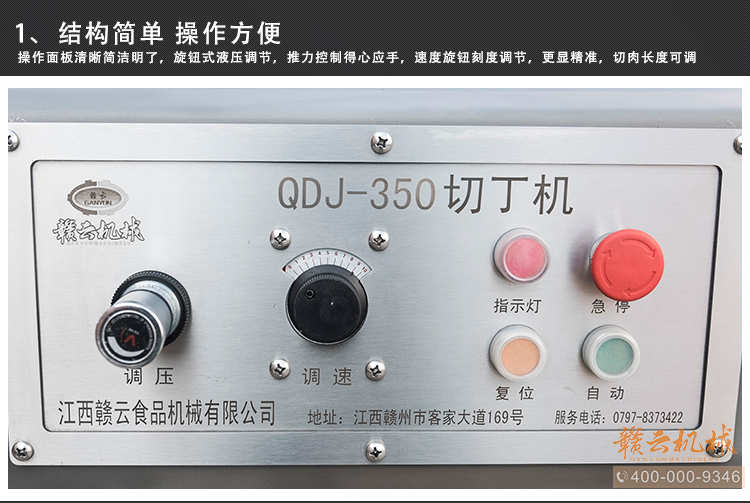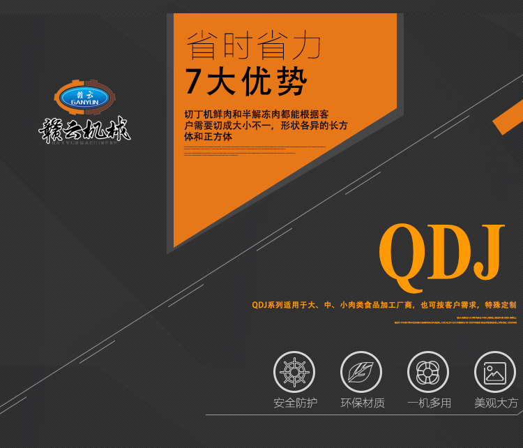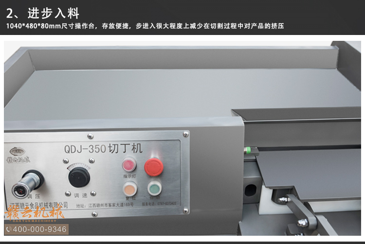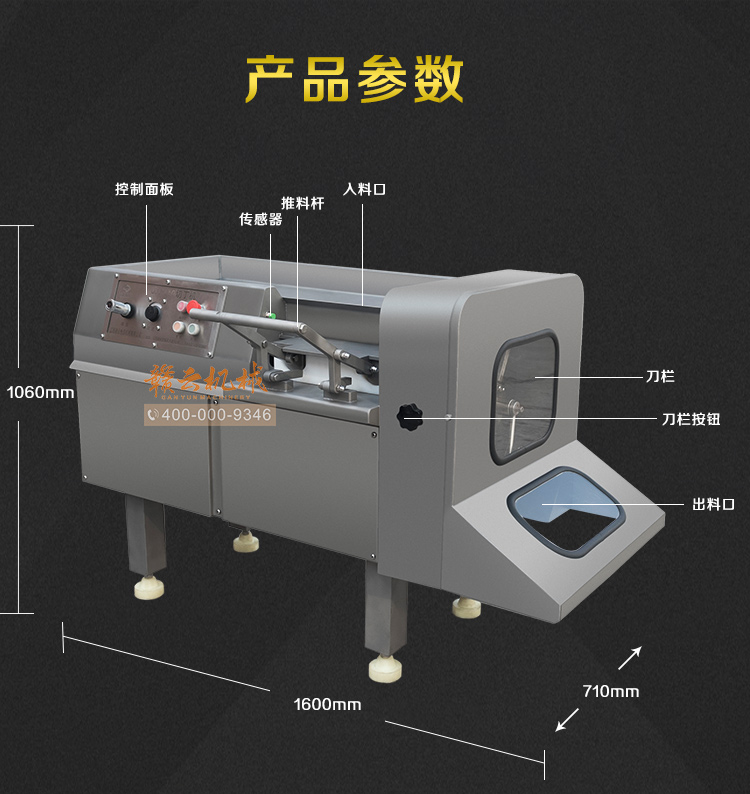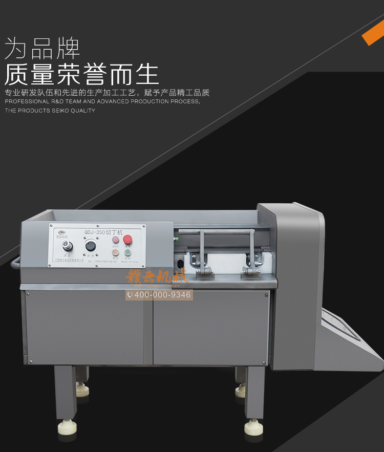 本設備采用全304不銹鋼構架,高級噴砂處理,激光雕刻,利用液壓推料設計,步進式進料,全自動切割,配合日本原裝進口刀具,鋒利切割,速度快,切割長度可調(diào),寬度規(guī)格可定制,并配備安全感應雙保護設置,整體外形美觀大氣,是肉類食品加工專用切丁設備。